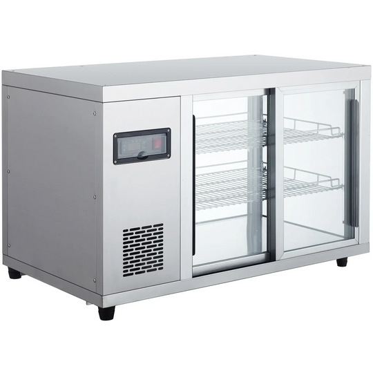 Features & Specifications: Three sided glass display with stainless steel frame and body Side mounted compressor Fan forced cooling system Self-evaporation water tray Interior LED lighting on all four corners Sliding rear doors for easy access Digital temperature controller &...Regular price $1,200.00Regular price $1,200.00 -