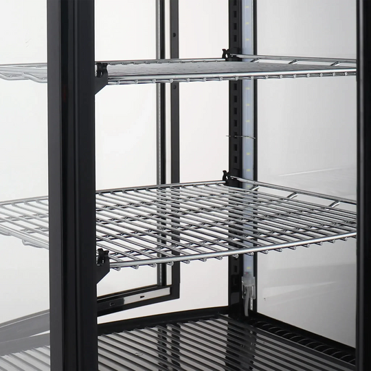 Features & Specifications: Four sided glass display with stainless steel frame and body Top mounted compressor for easy customer viewing Fan forced cooling system Self-evaporation water tray Interior LED lighting on all four corners Sliding rear doors for easy access Digital...Regular price $1,425.00Regular price $1,425.00 -